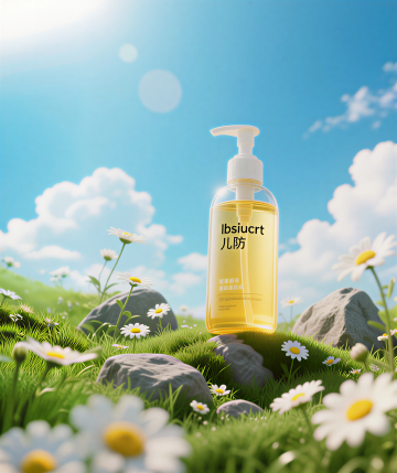 简约主义风格,清透冰块与黄色液体瓶,营造夏日清爽感。