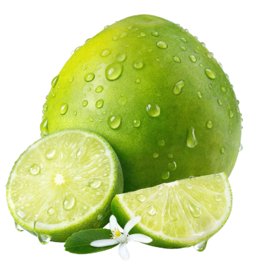 带有水滴和叶片细节的透明背景青柠切片图像