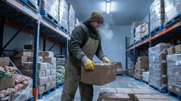 保持手套细节不变,分清正反面,一个外国环卫工人穿着这双手套在冬季打扫