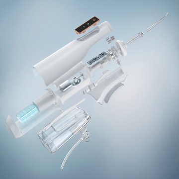 白色背景下,三层不同结构的透明材质叠层设计,最上层为带有细密六边形孔洞的平面层,中间层呈现波浪状起伏并同样布满小孔,底层是规则排列的半球形凸起结构,三个向上的蓝色箭头从叠层中心位置发出,整体采用科技感的蓝白渐变色调,光影柔和,具有清晰的结构层次感和半透明质感,展现产品的透气性与支撑性,设计风格简洁现代,偏向功能性产品的技术展示图。