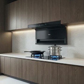 未来感与科技感交融的3D工业风厨房,重拟物金属质感冰箱居中,冷光线条勾勒空间,展现智能家电的极致美学。