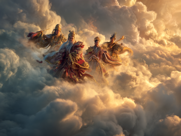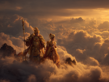 梦幻鎏金宫廷,女神持光杖立于云巅,翼马环绕,光影交织,3D重拟物风呈现欧洲宫廷艺术的神圣与奢华。