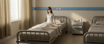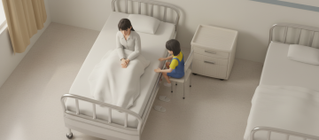环境为医院走廊,以3d动画渲染风格重绘,不改变角色动态和构图。