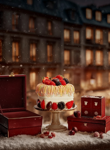 以蛋糕层叠成圣诞树,用红绿奶油配金饰、鲜果,将甜品与圣诞形态结合,既契合节日甜蜜氛围,又打造出美味又吸睛的创意装饰