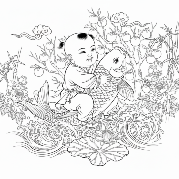 画喜上眉梢,黑白线稿