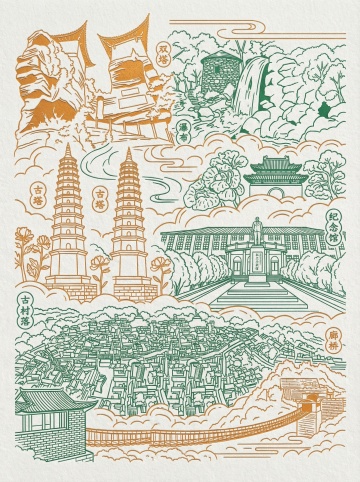 中式古典风格,鎏金描边线条勾勒传统元素,剪纸风单色设计,融合灯笼、扇子、祥云与福字,喜庆复古,尽显节日韵味。
