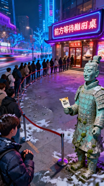 冬日雪夜街头,暖光映照烤红薯的氤氲热气,胶片质感中透出文艺与温馨。轻拟物风格融合实景光影,营造柔和舒适的故事氛围,传递细腻情感与唯美意境。