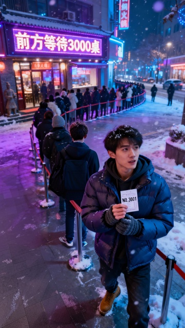美式复古风与胶片质感交织,雪夜街景中光影温柔流淌,人物神情细腻传递浪漫故事感,实景拍摄营造沉浸式文艺氛围。