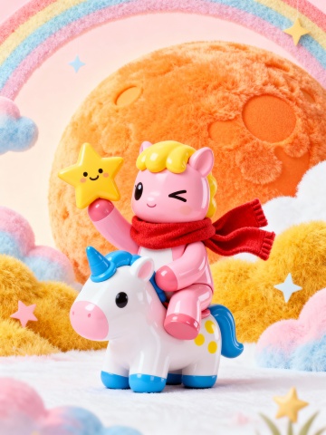 可爱感十足的拟人风小独角兽,搭配梦幻彩虹与星星爱心,采用扁平插画风格,充满童趣与节日欢乐氛围。