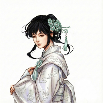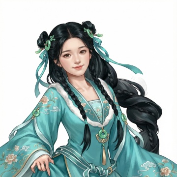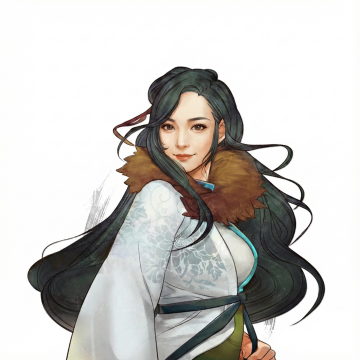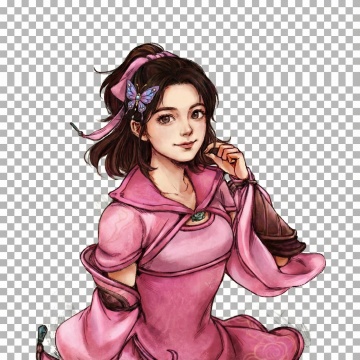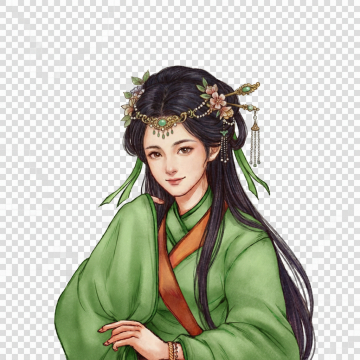 基本的绘画风格不变,面部样貌和神情更贴近女明星高圆圆,背景图不变为透明色