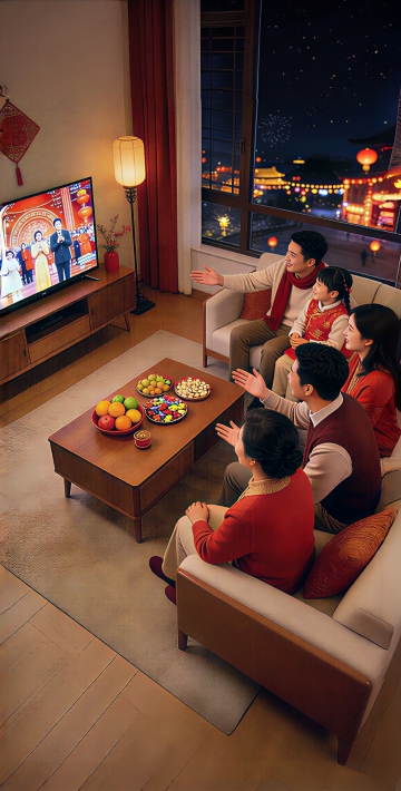 软3D风格插画,融合国潮元素与卡通感,雪夜烟花绽放,红灯笼高挂,孩童嬉戏屋檐,温馨喜庆的春节氛围扑面而来。