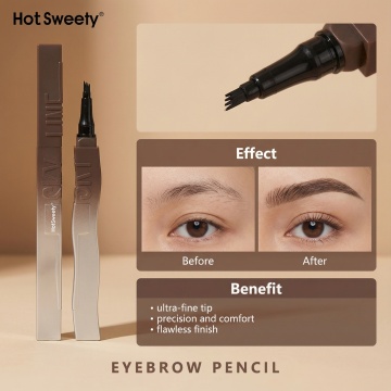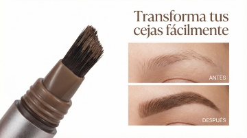 以图中的眉印套装为元素,欧美女人使用眉印,设计4张跟眉印套装有关的广告图,西班牙语,比例 「1:1」