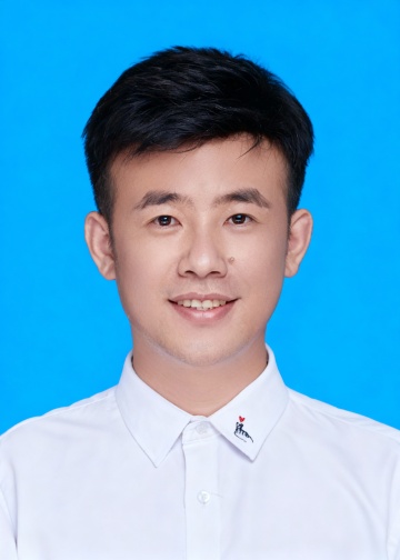 男生白色衬衫蓝底证件照