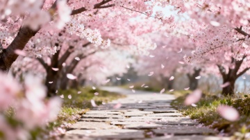 明媚阳光下绽放的粉色樱花特写,娇嫩花瓣呈现柔和渐变,花蕊点缀着淡黄色,纤细的棕色枝干支撑着繁茂的花朵,背景是纯净的浅蓝色天空,整体画面采用明亮通透的自然光,浅景深效果使前景樱花清晰锐利而背景逐渐柔和模糊,色调以粉白为主、蓝为点缀,营造出清新、浪漫、充满春日气息的氛围,高饱和度与柔和对比度展现出樱花的娇嫩质感与生机盎然。