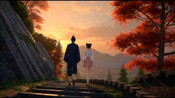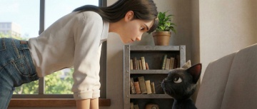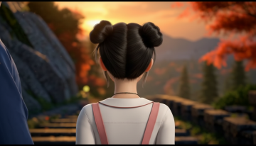 以3d动画渲染风格重绘,不要笔触和线条。年轻女性,空气刘海,黑色长发,哭泣表情,背景为雾气,保持原比例