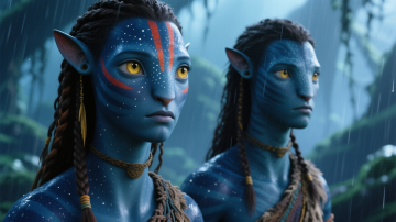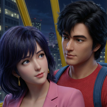 赛博朋克风都市夜景,蓝发少女伫立雨中,霓虹闪烁,未来感与科技感交织,虚拟现实粒子光影流动,营造沉浸式视觉体验。