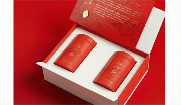 国潮风坚果礼盒,拟人化笑脸由坚果拼成,浮雕云纹点缀,喜庆红金配色,中式元素与现代创意融合,节日氛围浓厚。