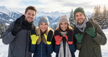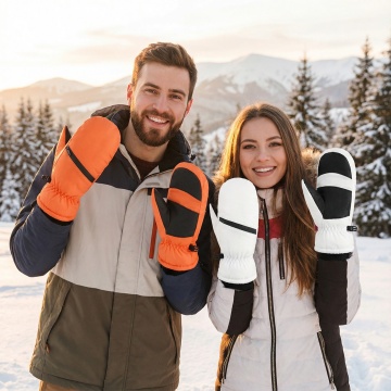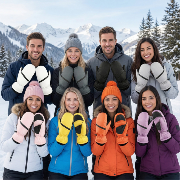 换个背景,这三个手套放在雪地