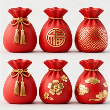 喜庆红金配色,融合卡通拟人与重拟物设计,3D立体质感突出,金属鎏金风彰显节日氛围,传递新春祝福与财富寓意。