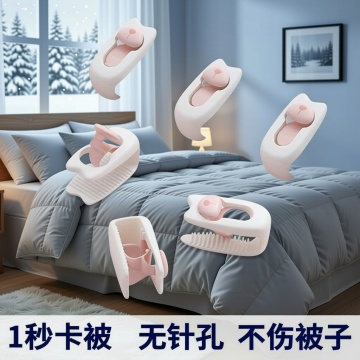 换一下文字颜色,在换一下背景,换成房间冬天被子场景,图片1比1,产品居中放大