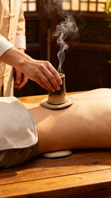温暖柔和的自然光透过竹帘洒入,营造出宁静舒适的氛围。一位专业的按摩师正手持白色陶瓷小壶,将金黄色的按摩精油缓缓滴落在顾客的背部。顾客趴在铺着洁白毛巾的按摩床上,背部肌肤在阳光下泛着健康的光泽。背景是简约雅致的木质装饰和绿色植物,整体环境充满自然、放松的感觉,光线柔和温暖,突出精油滴落的瞬间和肌肤的质感,营造出高端SPA的舒适体验。