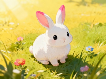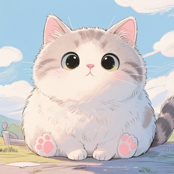 可爱感十足的卡通猫咪,水彩风插画,毛发生长细腻,梦幻清新,柔和舒适,动漫风格,背景蓝天白云,充满春日气息。
