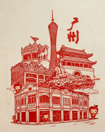 中式剪纸风广州中秋,月光洒落,光影交错