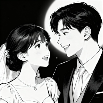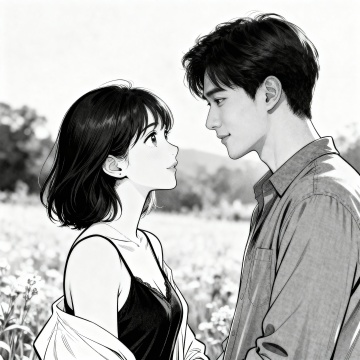 极简风格线条插画,四个不同纯色背景的爱情主题场景规整排布,每个场景均采用流畅、连续的单一线条绘制,线条粗细均匀,无填充色块,保持简约浪漫氛围。第一个场景:身着礼服的男女相拥共舞,背景为浅粉色;第二个场景:两人手牵手在星空下散步,男士指向天空星辰,背景为浅蓝色;第三个场景:情侣依偎在长椅上看书,女士头靠男士肩膀,背景为浅绿色;第四个场景:两人在海边背靠背坐着,眺望远方海平面,背景为浅紫色。所有元素均以极简线条勾勒,保持一致的绘画风格与细腻笔触,整体构图平衡对称,系列感强。