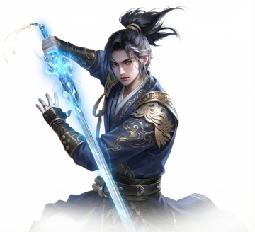 一个英俊的中国古代道长,飘逸的黑发,打太极