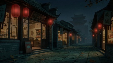 俯瞰视角,一轮占据画面三分之二的巨大满月悬浮在水墨风格的江南古镇上空,米黄色月盘上分布着如同玉兔轮廓的暗黄色月海纹理,环形山阴影化作广寒宫的剪影,月晕呈现出渐变的橙红色调,如同被点燃的桂花香气在夜空晕染开来。月光透过半透明的云层,在青瓦白墙的飞檐上洒下斑驳的光影,几盏红色灯笼从屋顶垂下,灯穗在微风中轻轻摇曳,水面倒映着残缺的月影和零落的桂花,空气中漂浮着细小的金色桂花微粒,整体氛围静谧而温馨,充满了团圆的期待感。