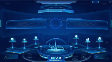 未来感科技界面,3D玻璃风设计,悬浮透明面板环绕中央主屏,粒子光效流动,虚拟现实交互体验,清透蓝调视觉。