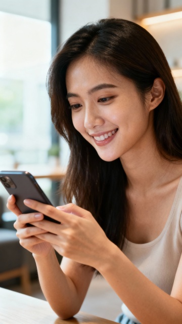 明亮通透的现代办公室环境,自然光透过大面积玻璃窗洒入,照亮浅色木质办公桌,桌面上放着银色笔记本电脑、打开的记事本、蓝色马克杯和一支铅笔。一位金发扎成马尾的女性,穿着白色衬衫和米色开衫,面带微笑专注地使用笔记本电脑。背景中可见白色磁性白板、木质书架和简约办公家具,整体风格简约清新,色调以原木色、白色和浅蓝色为主,光线柔和自然,营造出专业且舒适的工作氛围,可从不同角度展示办公室内的其他区域如会议区、休闲区或不同工位布局,保持相同的现代简约风格和明亮采光。