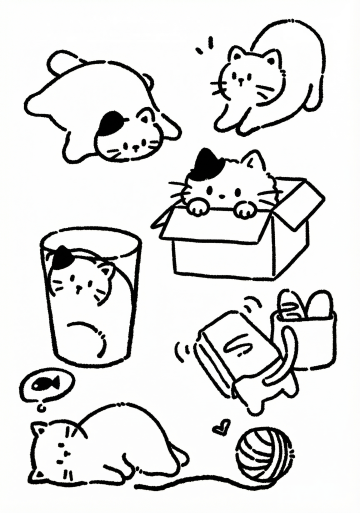 生成1:1比例的卡通猫咪排列图。画面中不同形象和表情的猫咪紧密无缝排列,整齐挨在一起完全平铺画面,无任何留白。猫咪采用更简洁的几何轮廓造型,表情包含星星眼、委屈嘴、打哈欠等新设计,色彩以马卡龙色系为主,排列方式为行列对齐的网格状布局,确保边缘严丝合缝。