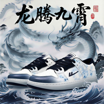 国潮风插画,龙腾云海,大字“龙腾盛世”,古典中式感,节日庆典设计。