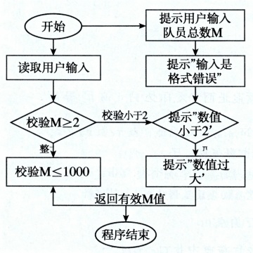 流程图,敢死队约瑟夫环数组法求解模块流程,包含开始(椭圆)、初始化队员数组与标记数组(矩形)、初始化起始编号遍历变量 st=1(矩形)、设置当前报数位置 cur=st-1(矩形)、模拟报数与淘汰标记(矩形)、判断最后剩余队员是否为 1 号(菱形)、是则记录 st 为有效起始编号(矩形)、否则 st++(矩形)、判断 st≤M(菱形)、是则返回 “设置当前报数位置 cur=st-1”(箭头)、否则返回有效编号(无则返回 - 1)(矩形)、程序结束(椭圆),黑白配色,背景要白色!!!步骤简洁,体现数组标记逻辑。