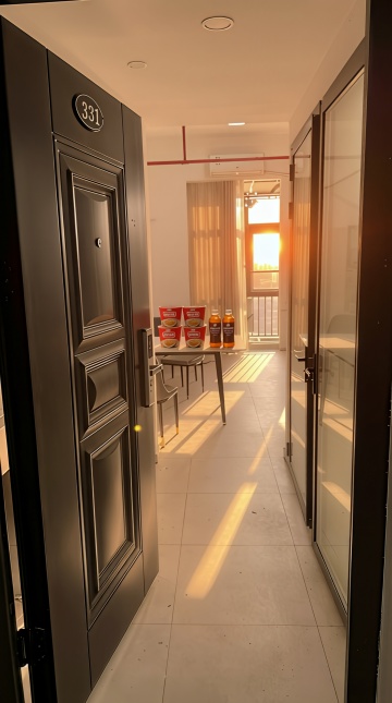 夜晚城市背景的办公场景,从不同视角展现。大型落地窗,窗外是华灯初上的繁华都市夜景,天空呈现出深蓝到橙红渐变的暮色。木质桌面上,一台打开的笔记本电脑,旁边有一个点燃的玻璃烛台,烛光温暖。整体画面采用写实风格,光影效果突出,营造出宁静而专注的办公氛围,色调以深蓝、橙色和暖黄为主,光线柔和,细节丰富,具有电影般的质感。