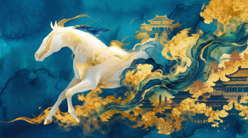 古典中式工笔岩彩鎏金风,驼铃声中穿越千年古韵,山水间尽显盛世繁华。
