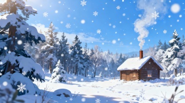 雪落山居,实景感与光影交织,静谧中透出温馨,柔和色调渲染质朴冬景,水墨风与油画风交融,唯美而文艺。