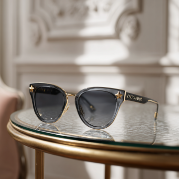 一副高品质的复古半框太阳镜,采用玳瑁纹醋酸纤维镜框,呈现出深浅不一的棕黑色斑点花纹,光泽细腻柔和。镜片为均匀的深棕色,带有轻微的反光效果,通透且具有质感。银色金属鼻梁架连接左右镜框,纤细精致,与玳瑁色形成优雅对比。镜腿末端略微内收,整体线条流畅自然。太阳镜以一个新的角度(非正面,例如略微向右侧倾斜约30度角)悬浮于纯白色背景之上,光线从左上方45度角柔和照射,在镜片上形成自然的高光和细微的阴影,镜框边缘有清晰的明暗过渡,整体保持产品摄影的写实风格,突出材质细节和立体感,无任何文字、LOGO、二维码或额外装饰元素。