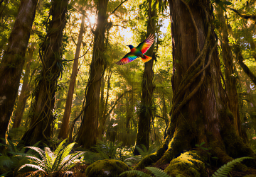 梦幻插画风,清新虚拟自然,超现实主义森林,光影交织,生机盎然。