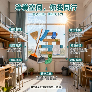 尊重体谅:尊重他人生活习惯,协商解决分歧,夜晚按时熄灯、保持安静。