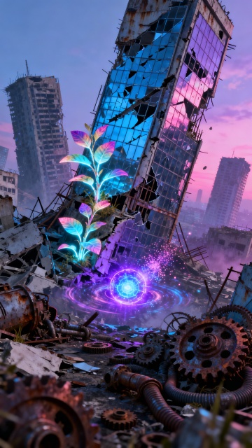 梦幻悬浮岛,霓虹光影交织,3D超现实风格,粒子流动与神秘建筑共生,营造唯美感与虚拟现实氛围。
