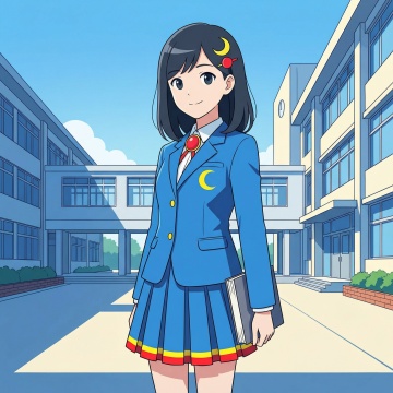 清新甜美动漫风,少女校服阅读,简洁线条展现青春活力。