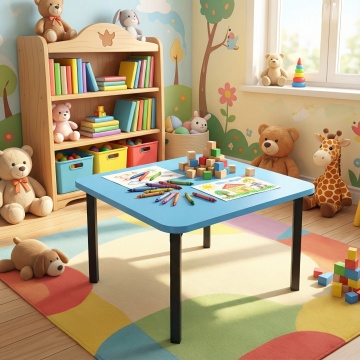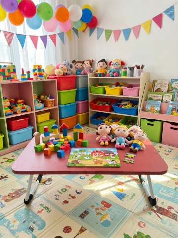 极简主义风格的儿童卧室,温暖柔和的原木色与米白色为主色调,自然光从侧面窗户洒落形成柔和的光影效果,细腻的木质纹理与编织质感的地毯和收纳篮,浅米色墙壁上挂着装饰画,不同形态和布置的木质家具(如带抽屉的储物柜、简约单人床),地面散落着不同尺寸的毛绒玩具熊,整体营造出温馨舒适、简约自然的氛围,干净整洁的空间布局,柔和的光线带来宁静惬意的感觉,不同布置的背景中保持原木色系与编织元素的统一风格。
