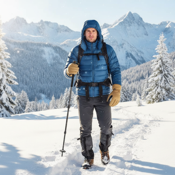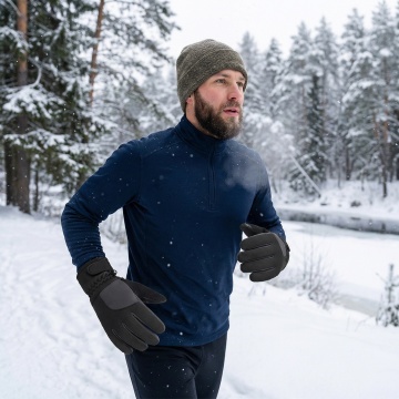 保持手套细节不变,分期正反面,一个外国帅哥穿着这双手套在冬季骑行