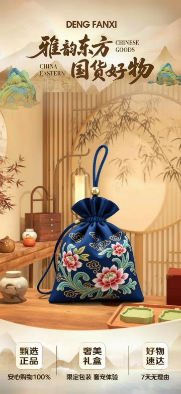 鎏金中国结搭配玉坠,水墨山水背景,融合国潮风与重拟物设计,展现中式奢华与古典优雅,寓意新春招财纳福。