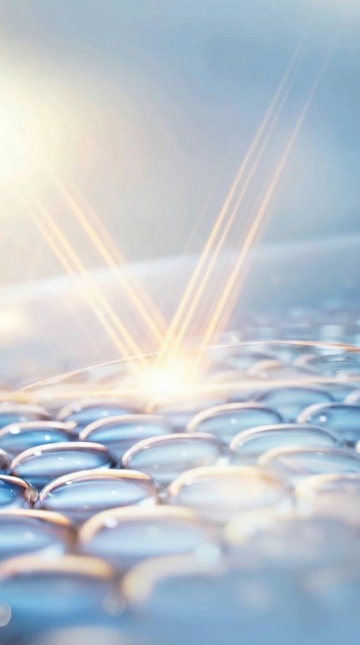 3D渲染风格的护肤品精华液广告海报,以纯净的白色为背景,画面中心是一个透明的球形精华液胶囊,内部含有金色的小分子结构和悬浮的金色小气泡,胶囊被流动的金色液体环绕,液体呈现出优雅的波浪形态,边缘光滑且带有高光,周围散布着大小不一、分布规整的金色气泡,整体色彩纯净清新,光影柔和,高光清晰,营造出高端、科技、纯净的氛围,视觉层级明确,核心视觉元素突出,具有极强的信息传达效率和设计感。