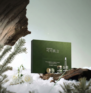 清新绿意中,3D玻璃风瓶身置于草丛礼盒,轻拟物设计融合虚拟自然,简约主义演绎清爽舒适感。