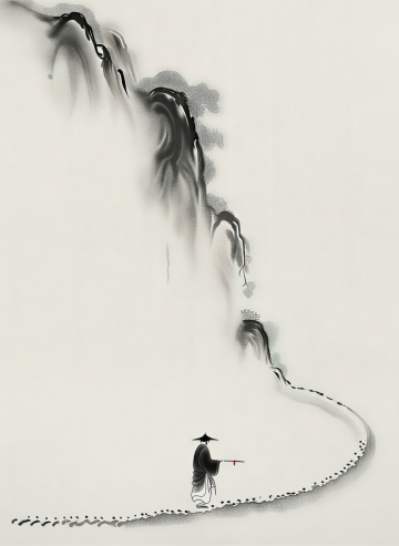 水墨晕染与水彩交融,朦胧抽象中透出中式意境,简约笔触营造文艺氛围,如山水相望,静谧悠远。