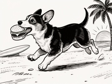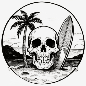 加州朋克风骷髅正在冲浪黑色线条白色背景
